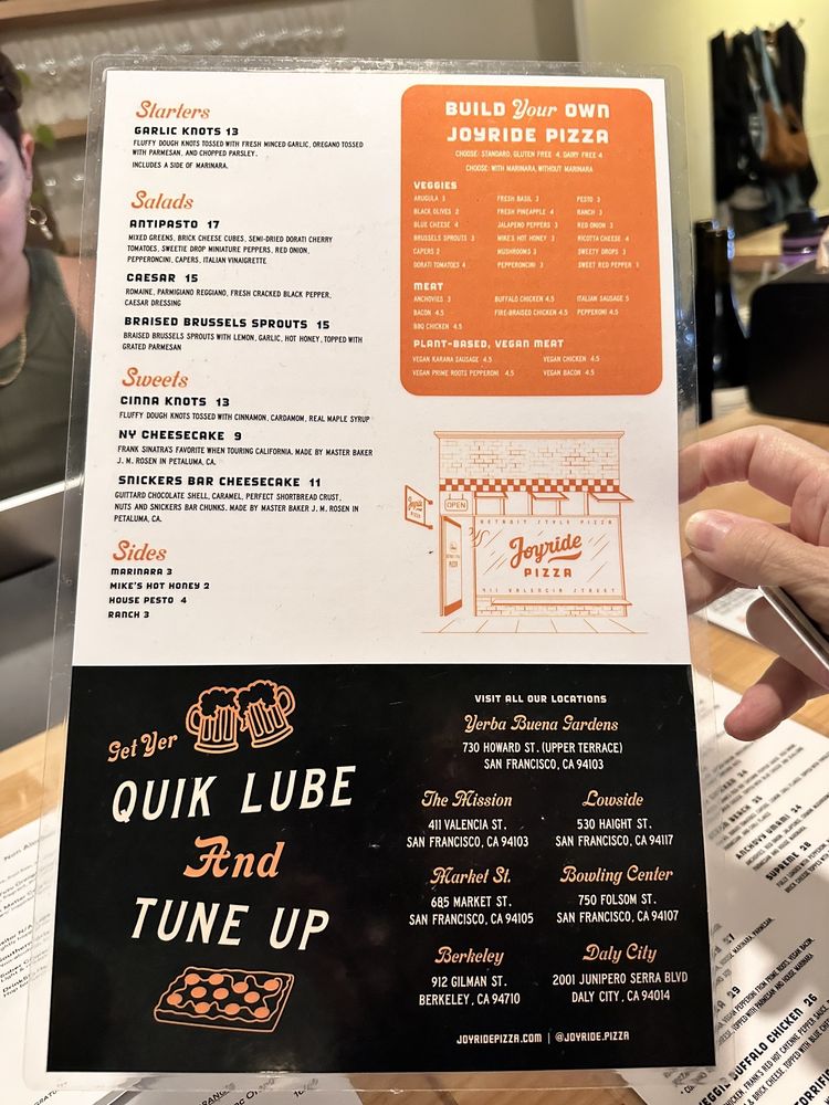 Welcome to Joyride Pizza, Lowside, a vibrant dining destination nestled at 530 Haight St in San Francisco. This establishment specializes in Detroit-style pizza, delivering a unique culinary experience that has rapidly gained popularity among locals and visitors alike.