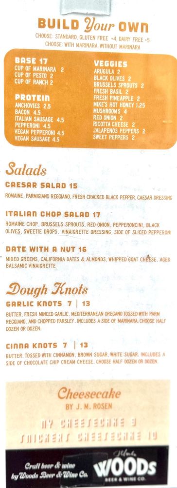 Joyride Pizza, Lowside Menu