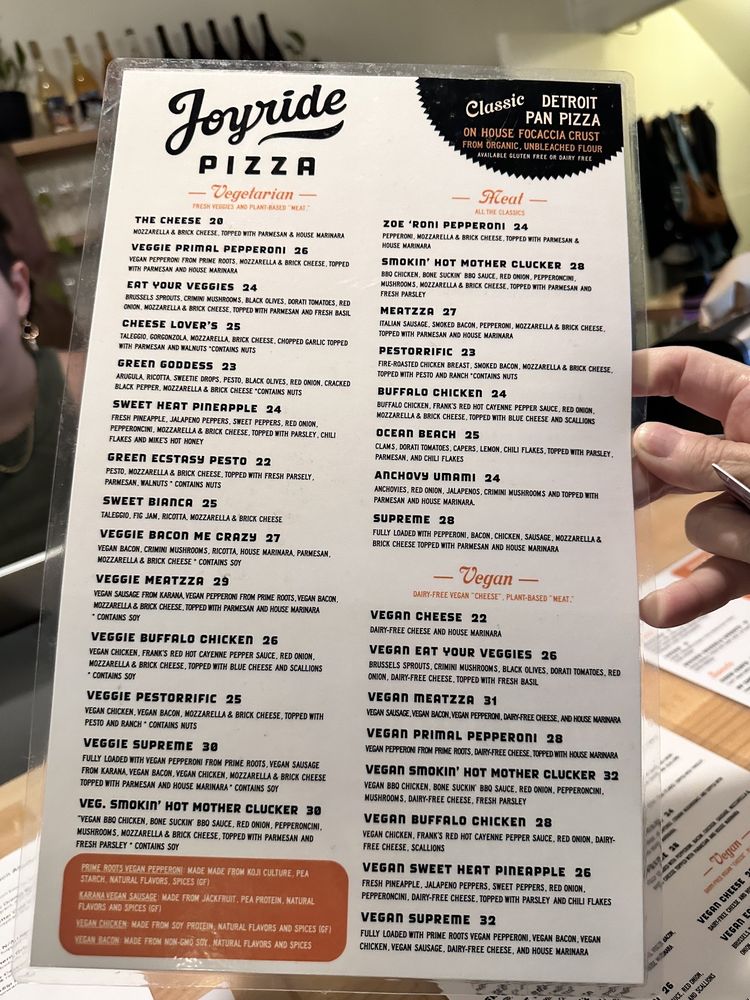 - Diverse Menu: From the mouthwatering Zoe Roni Pepperoni to the innovative Pestorrific, Joyride offers an array of delectable pizzas catering to a variety of palates, including vegan options that delight.